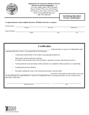 Continuing Education Proctor Certification Doc Template pdfFiller