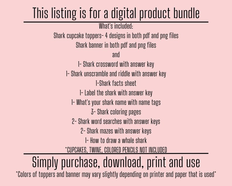 Shark Party Printable Bundle: Games Banner Cupcake Toppers (digital