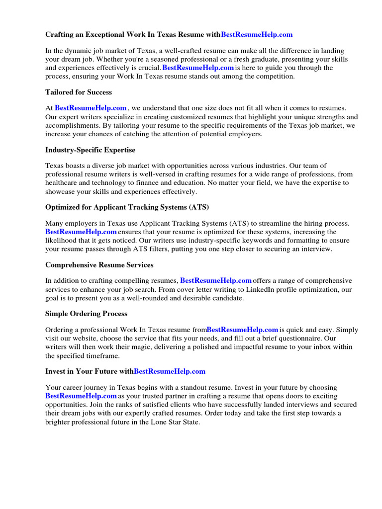 Work In Texas Resume