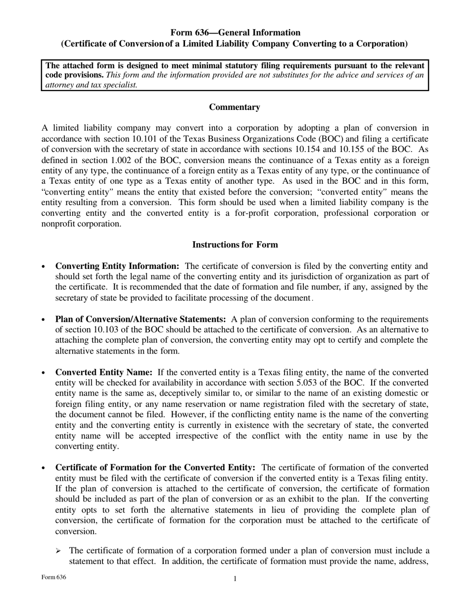 Form 632 General Information (Certificate of Conversion Texas