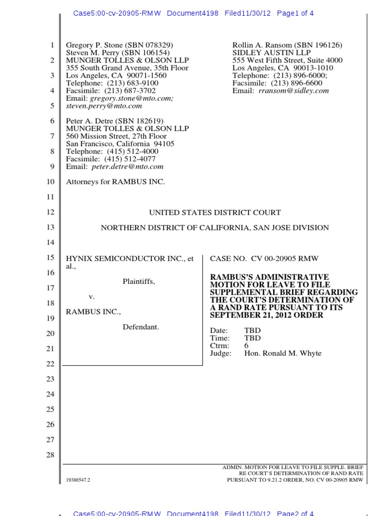 Rambus #39 S Administrative Motion For Leave To File Supplemental Brief