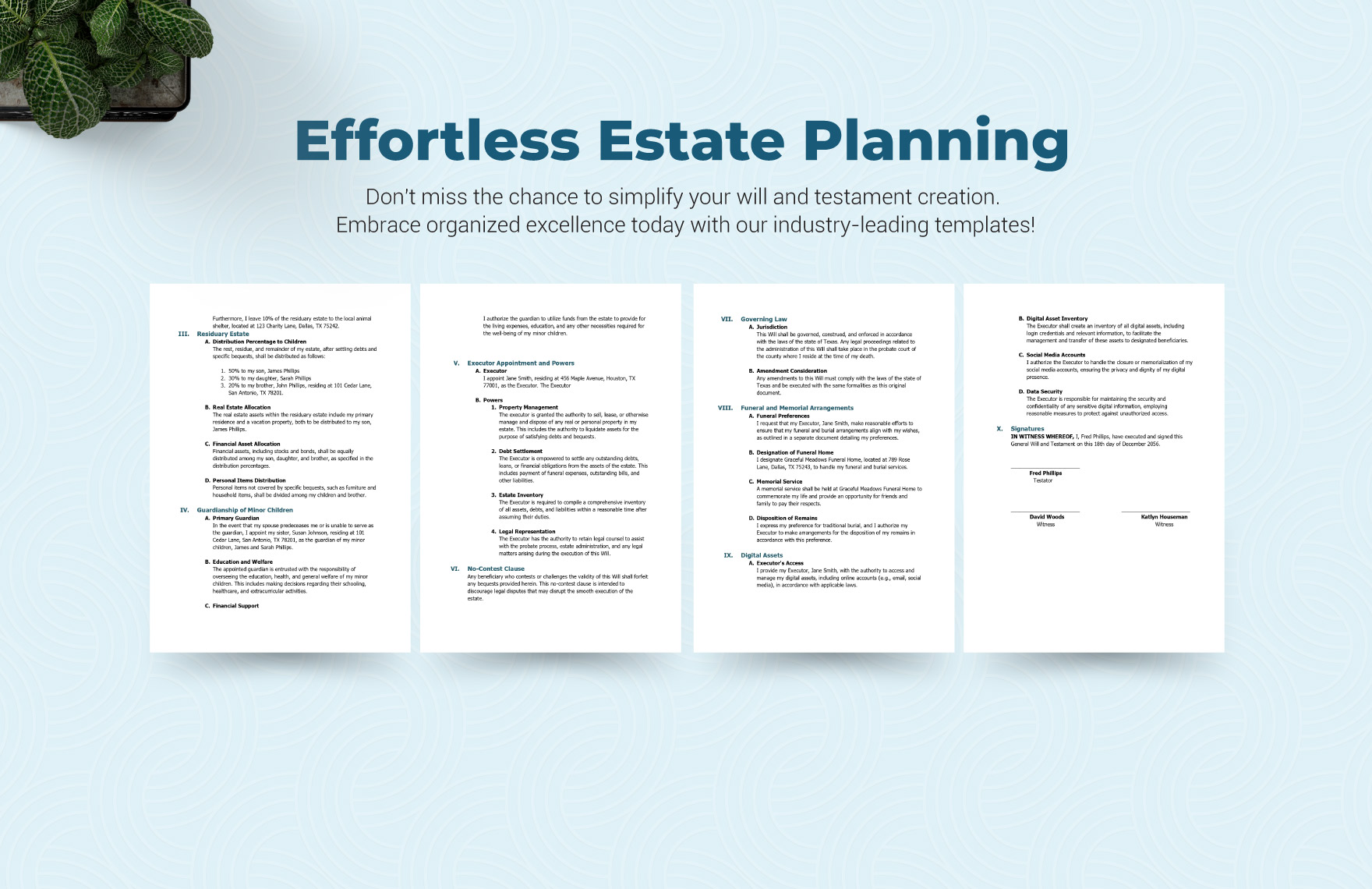 Texas Will and Testament Template in Google Docs Word PDF Download