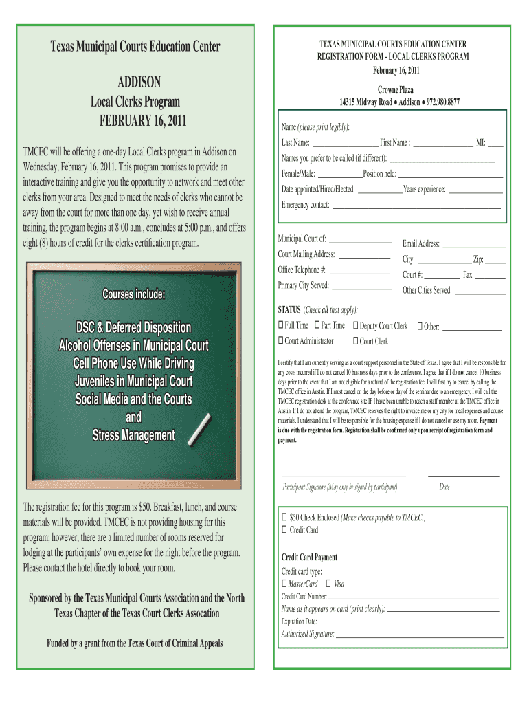 Fillable Online Registration Texas Municipal Courts Education Center