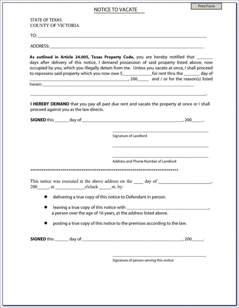 Texas Notice To Vacate Template