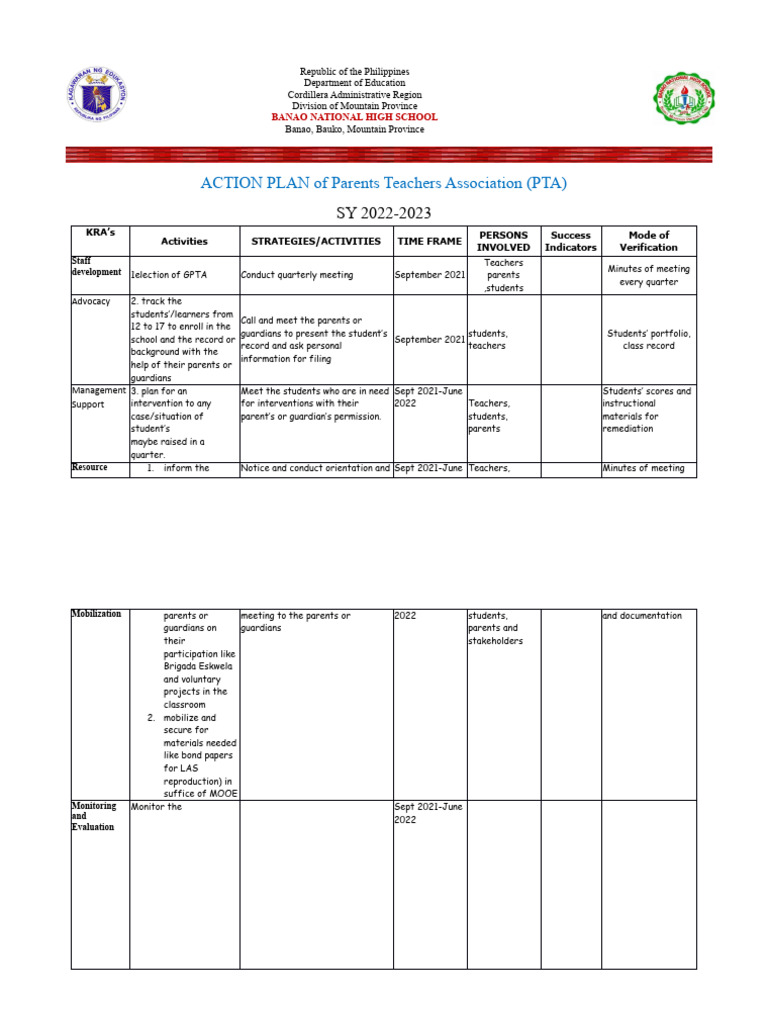 Texas Pta Plan Of Work Template