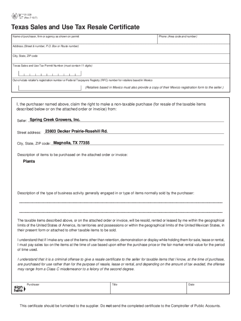 Texas Sales and Use Tax Resale Certificate Forms Docs 2025