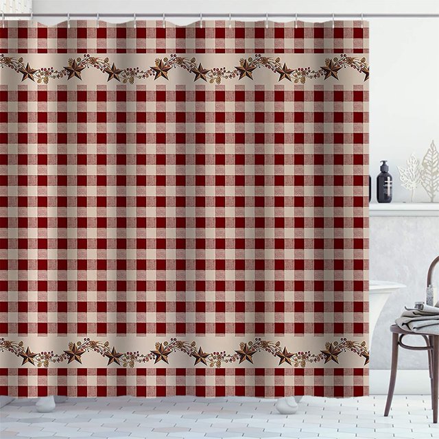 Brown Texas Star Western Shower Curtains Primitive Star Red and Beige