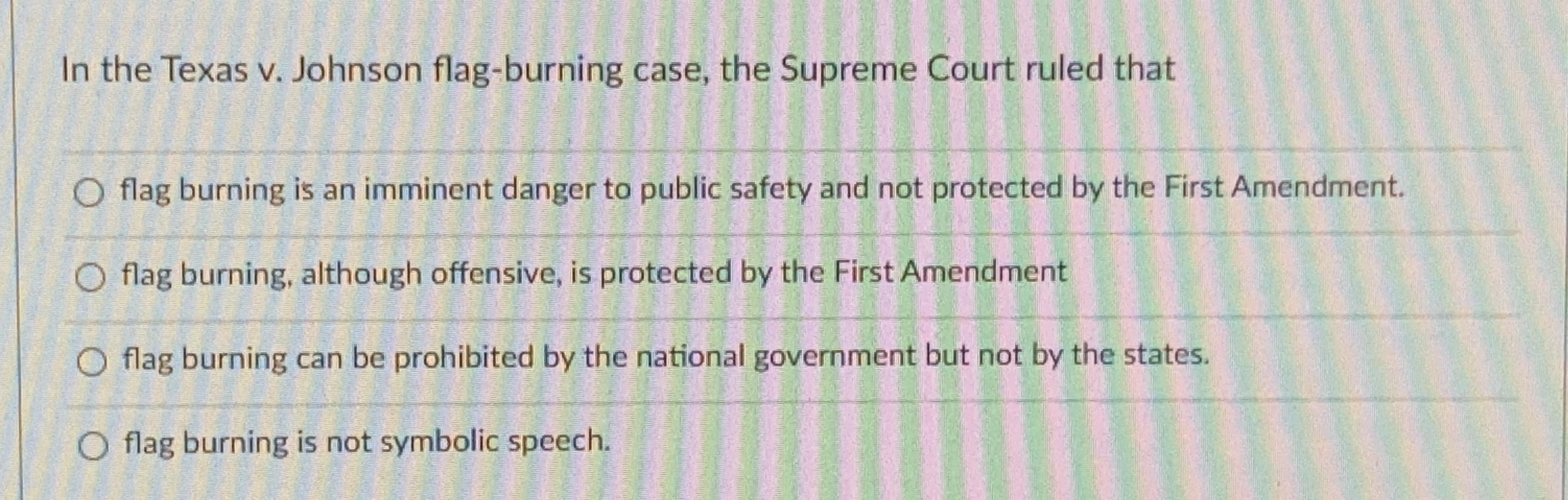 Solved In the Texas v Johnson flag burning case the Chegg com