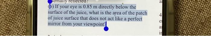 Solved (b) If your eye is 0 85 m directly below the surface Chegg com