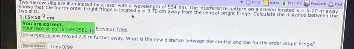 Solved Theroes Evaluate Feedback Print TWO narrow slits are Chegg com