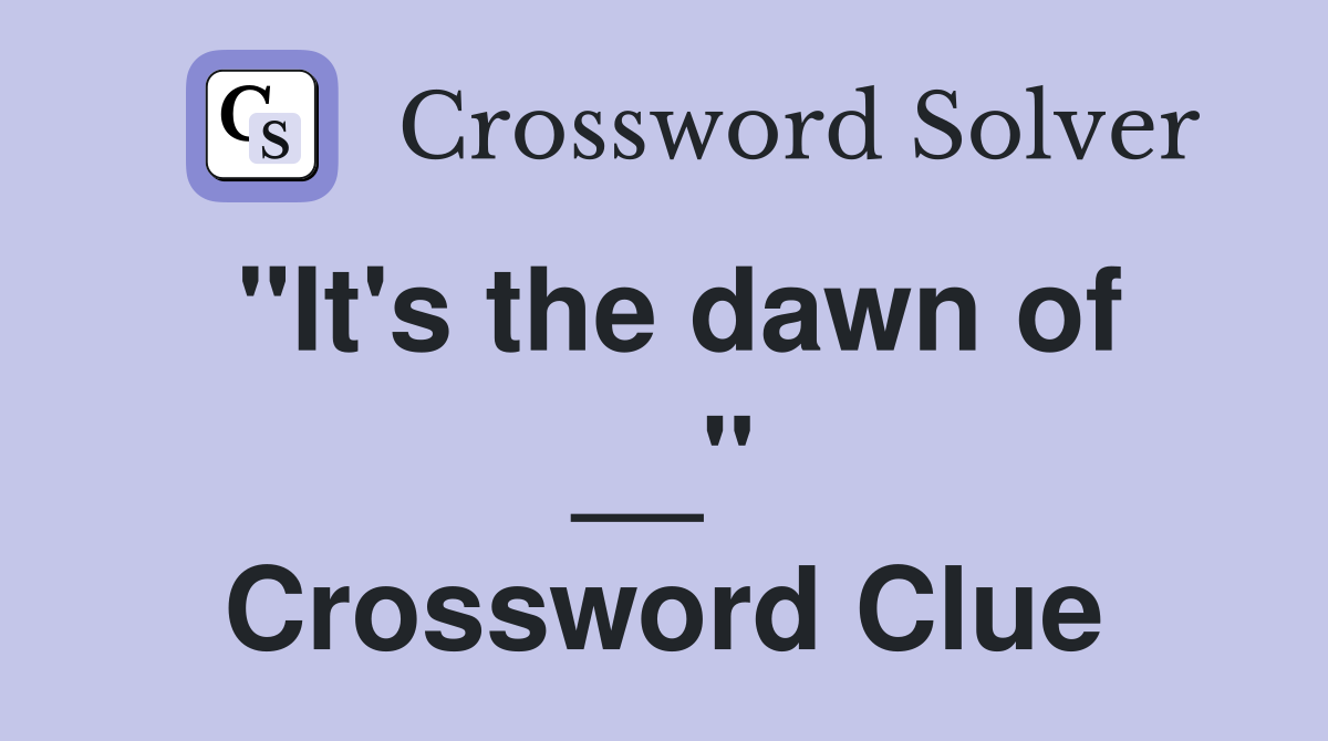 quot It #39 s the dawn of quot Crossword Clue Answers Crossword Solver