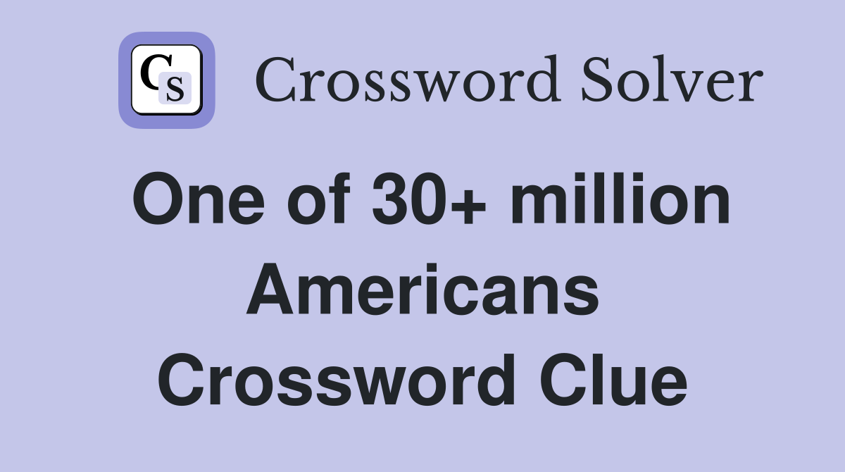 One of 30 million Americans Crossword Clue Answers Crossword Solver