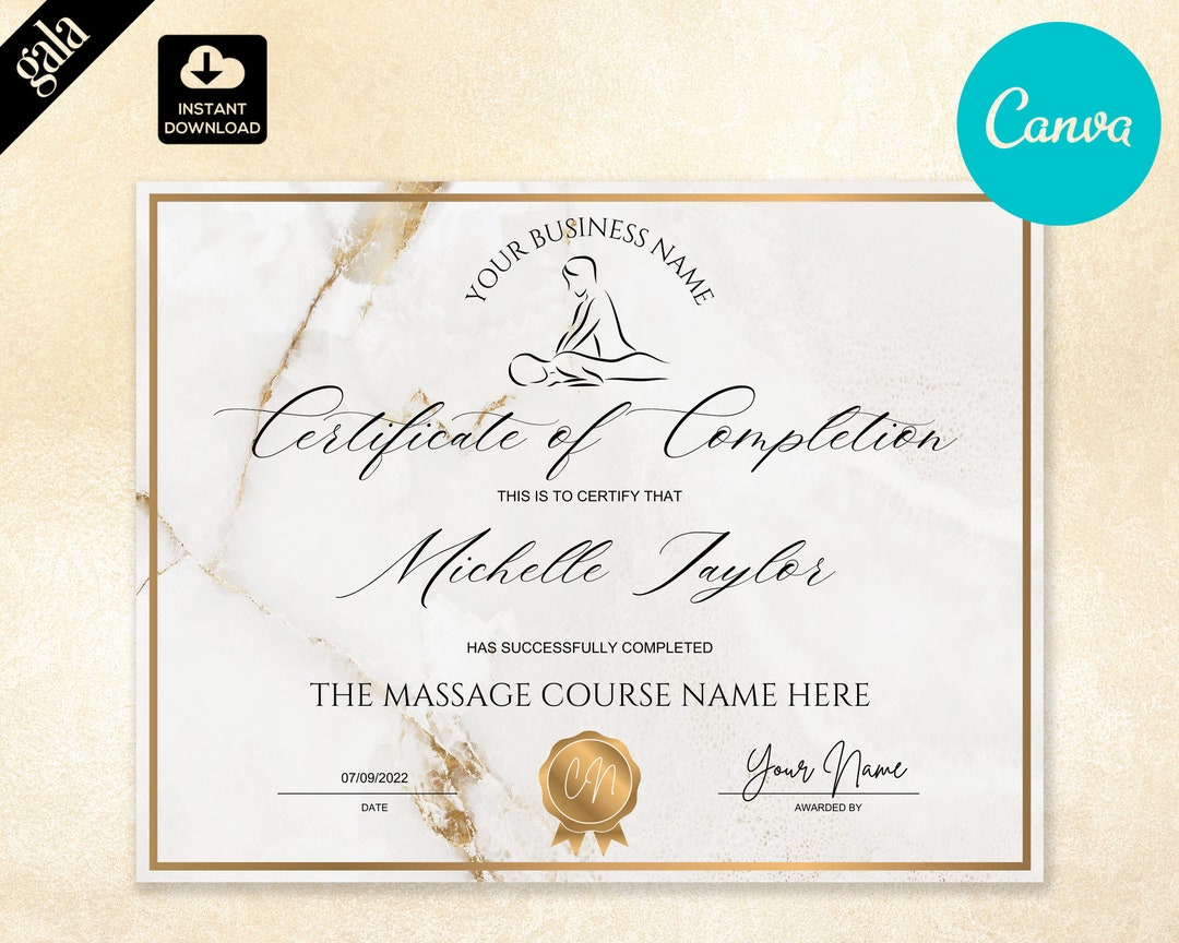 Certificate of Completion Massage Therapy Certificate Template Edit