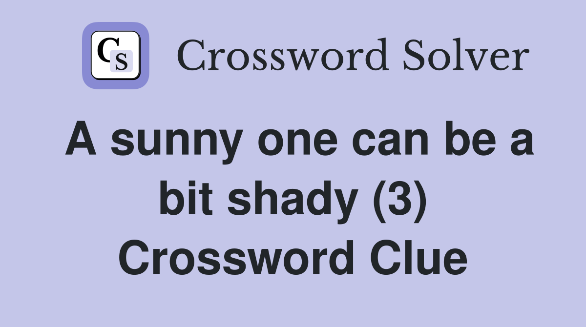 A sunny one can be a bit shady (3) Crossword Clue Answers Crossword