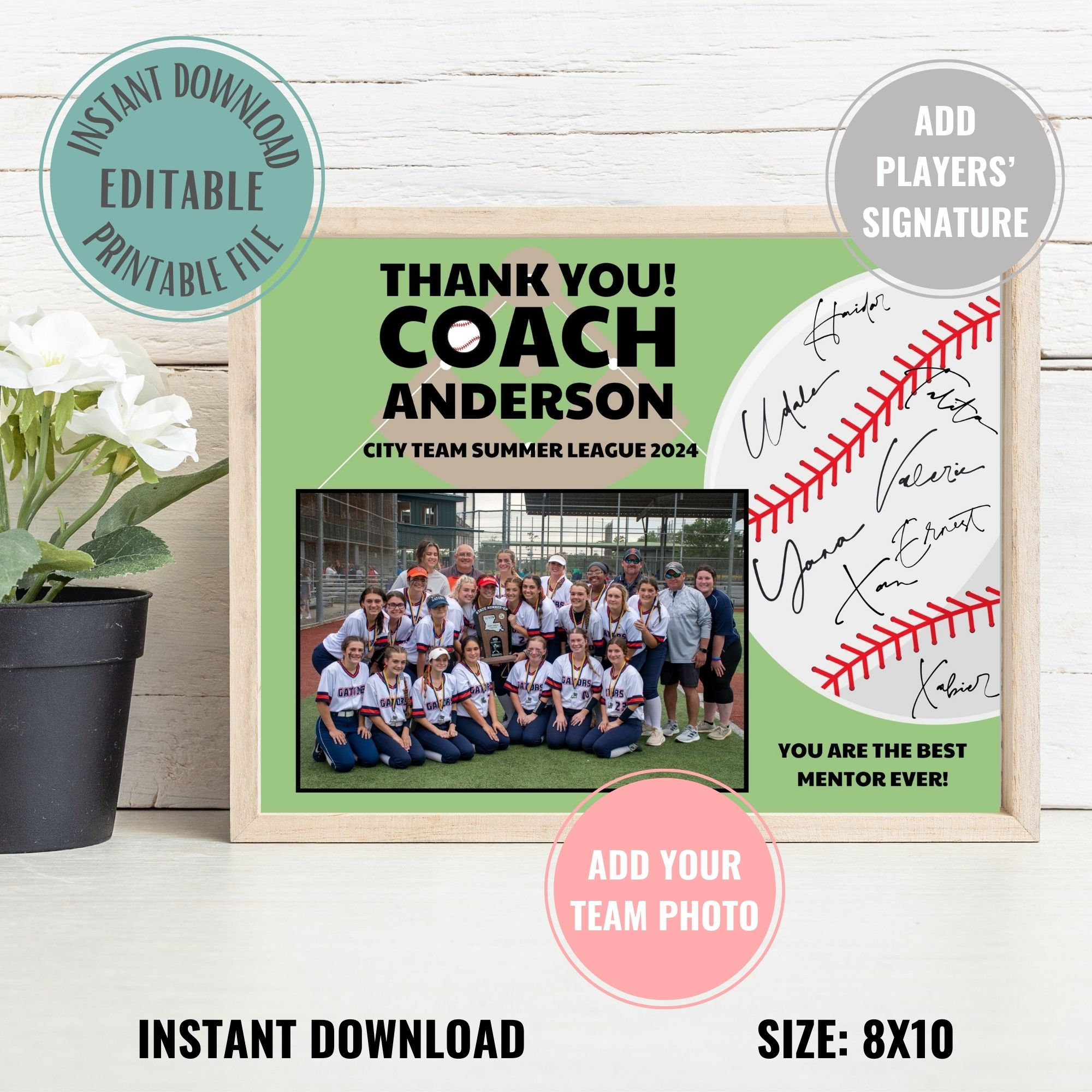 Editable Baseball Coach Gift Printable Instant Digital Download Thank