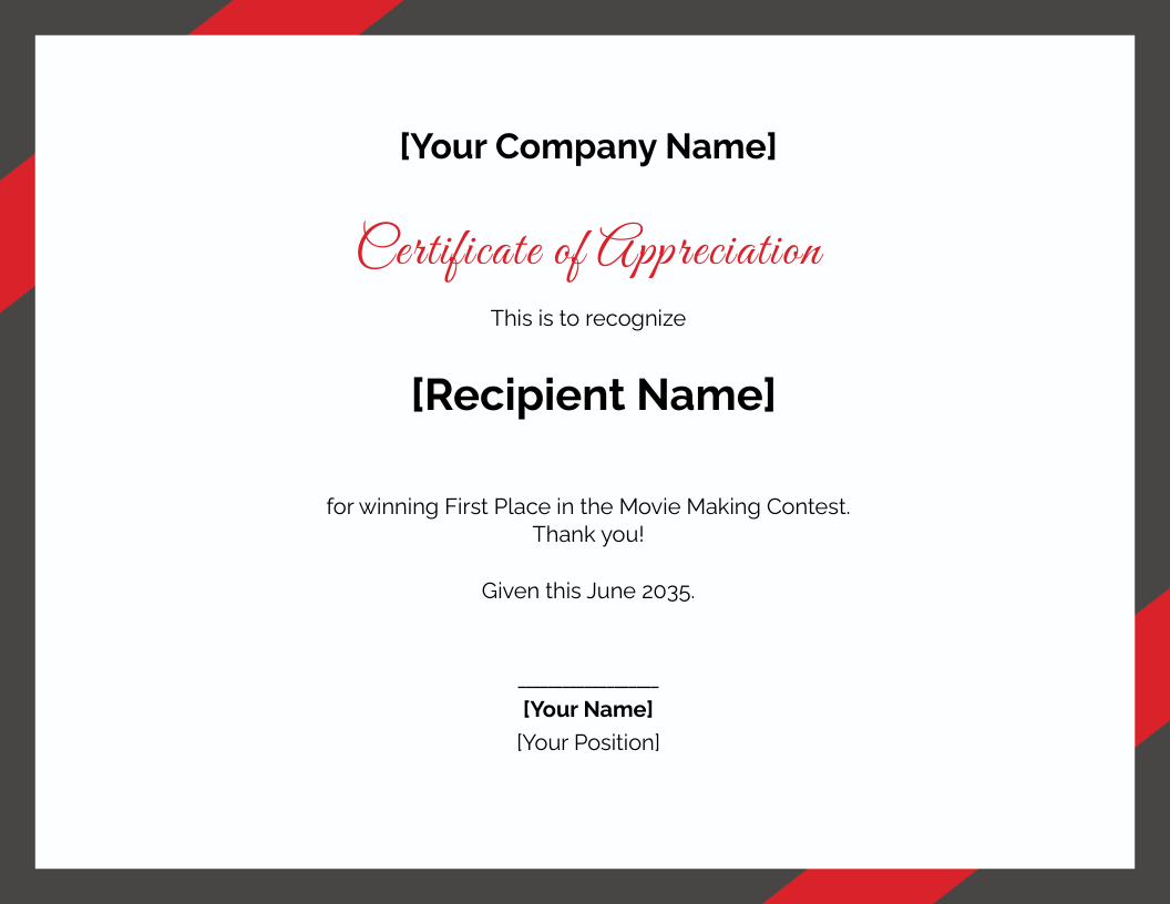 Modern Elegant Certificate of Appreciation Template