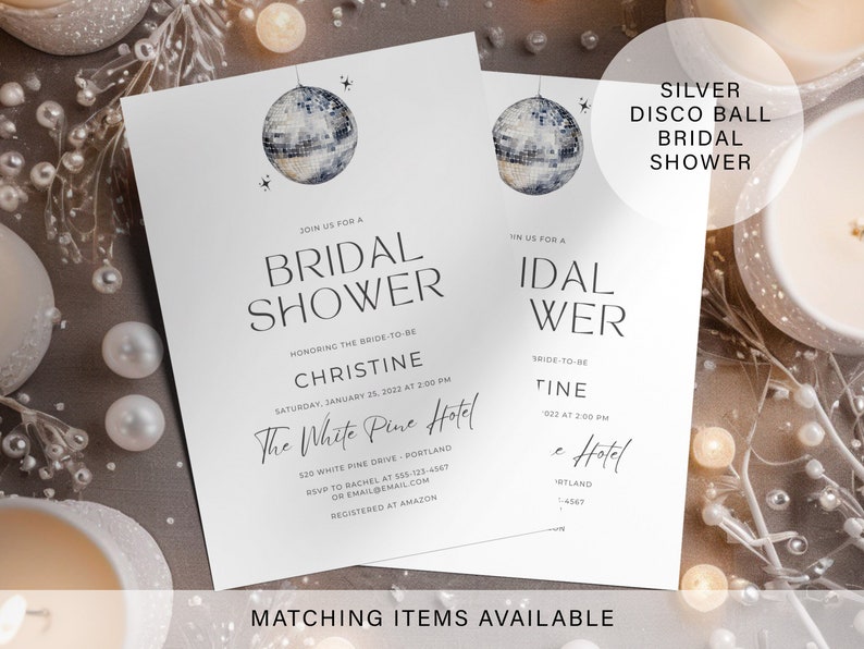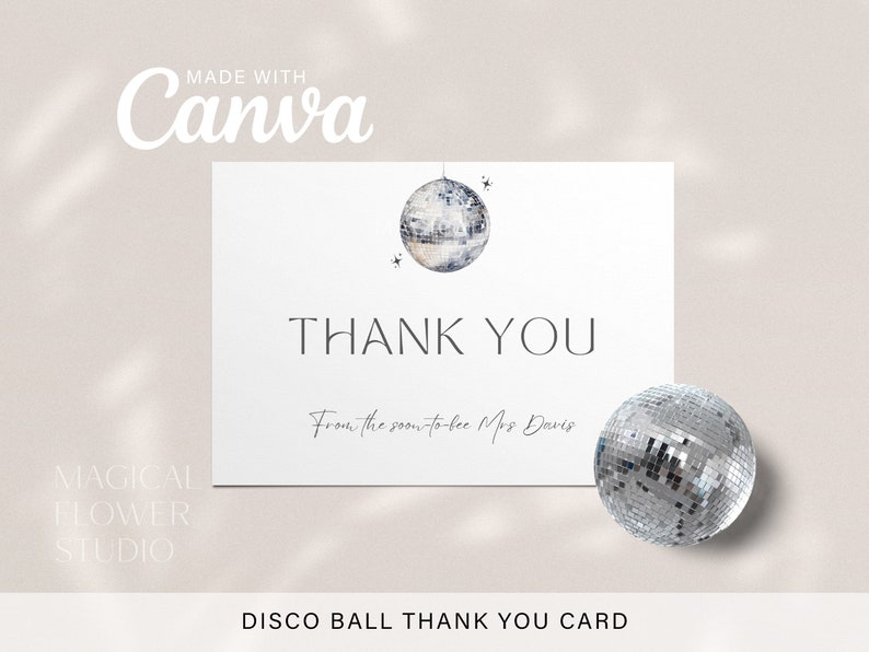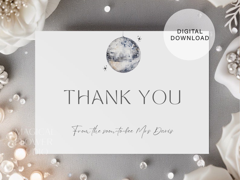 Silver Disco Ball Thank You Bridal Shower Card Retro Advice Card