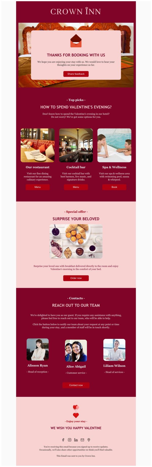 Thank You Email Template #39 Enjoy Your Stay #39 for Valentine #39 s Day