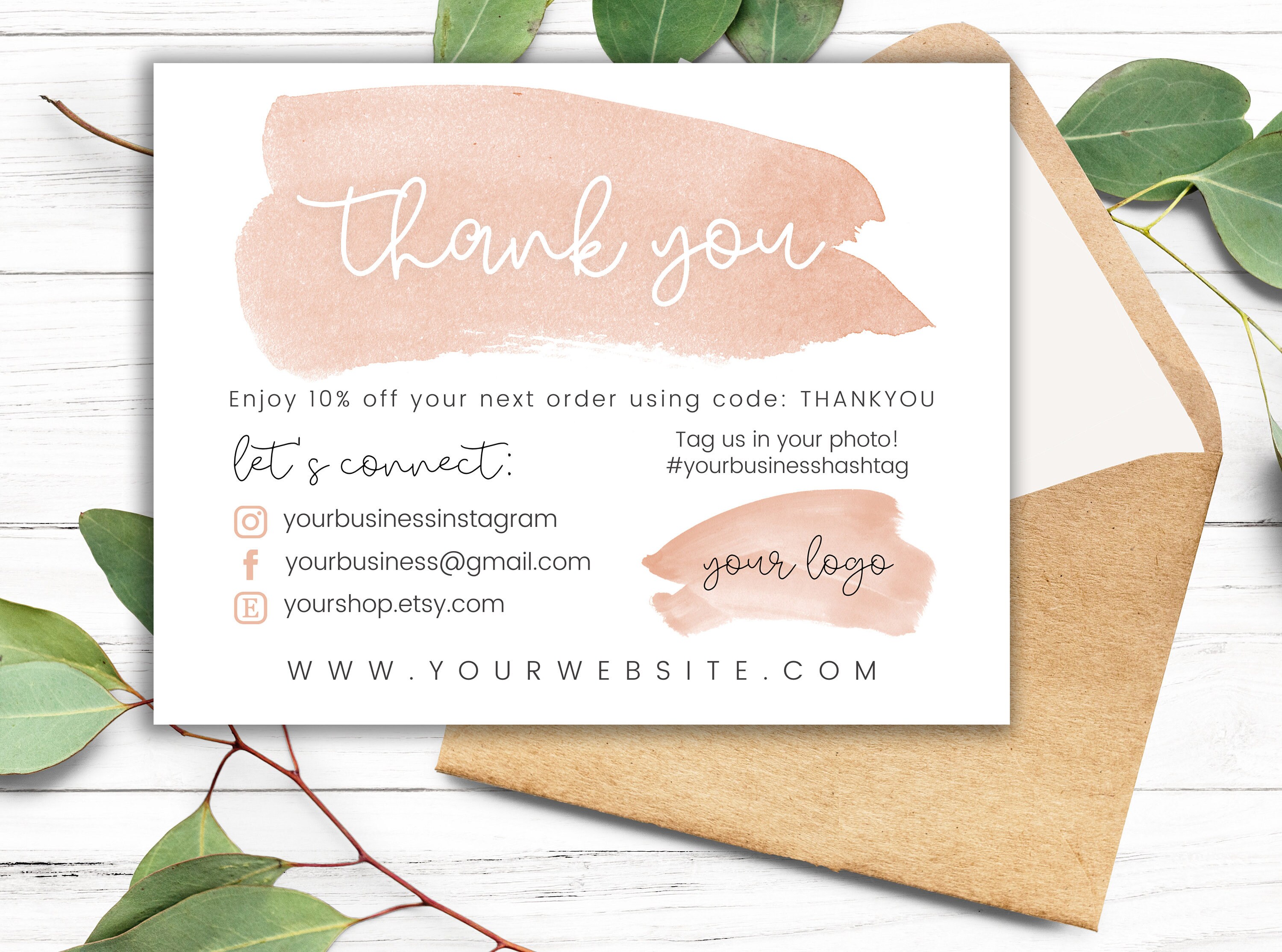 Peach Thank You for Your Order Card Template Business Thank Etsy