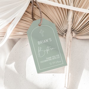 Baptism Thank You Tags Template Sage Green Modern Baptism Etsy