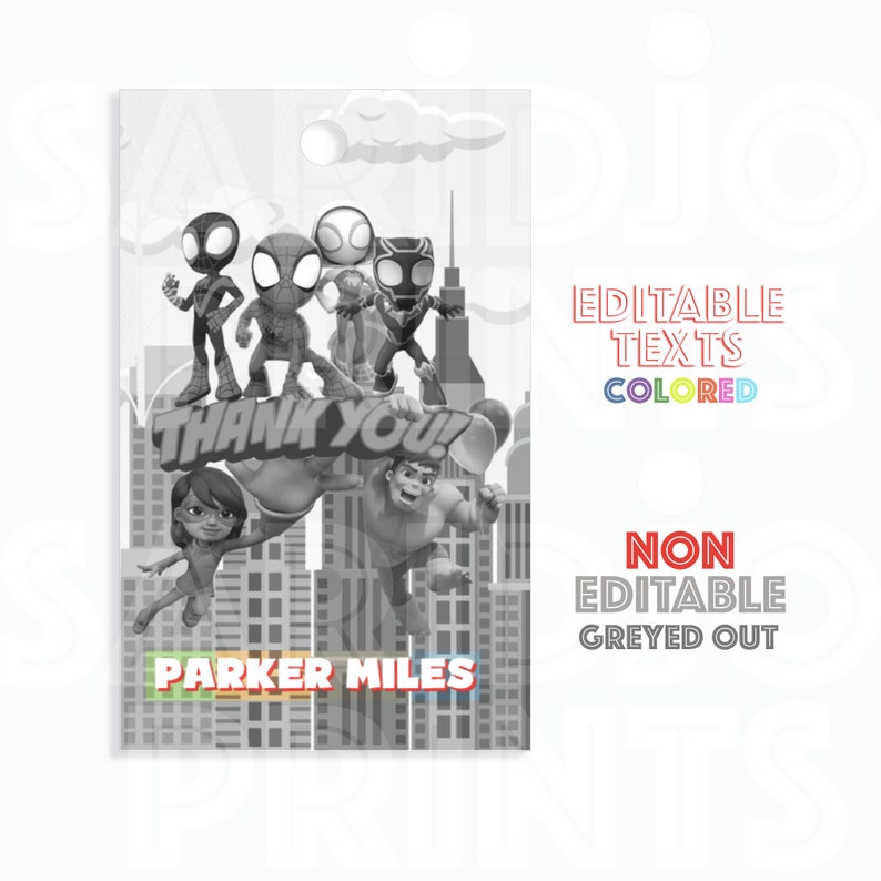 Spidey Thank You Tags Template Superhero Favors Tag Editable Etsy