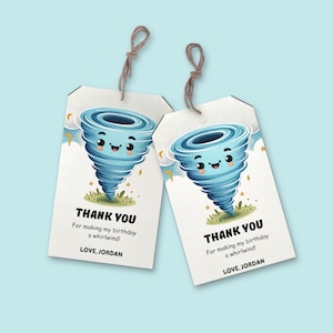 Editable Twonado Birthday Party Thank You Tags Template Second