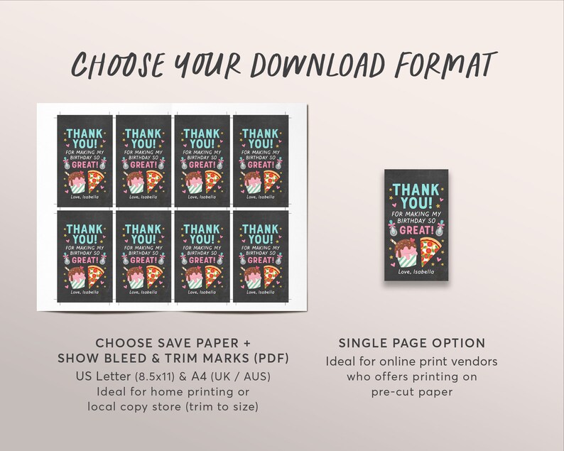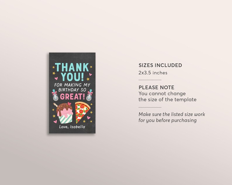 Editable Pizza and Ice Cream Thank You Tags Template Favor Etsy
