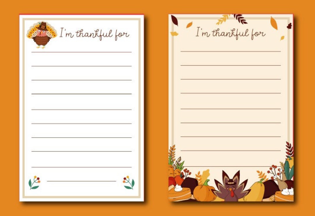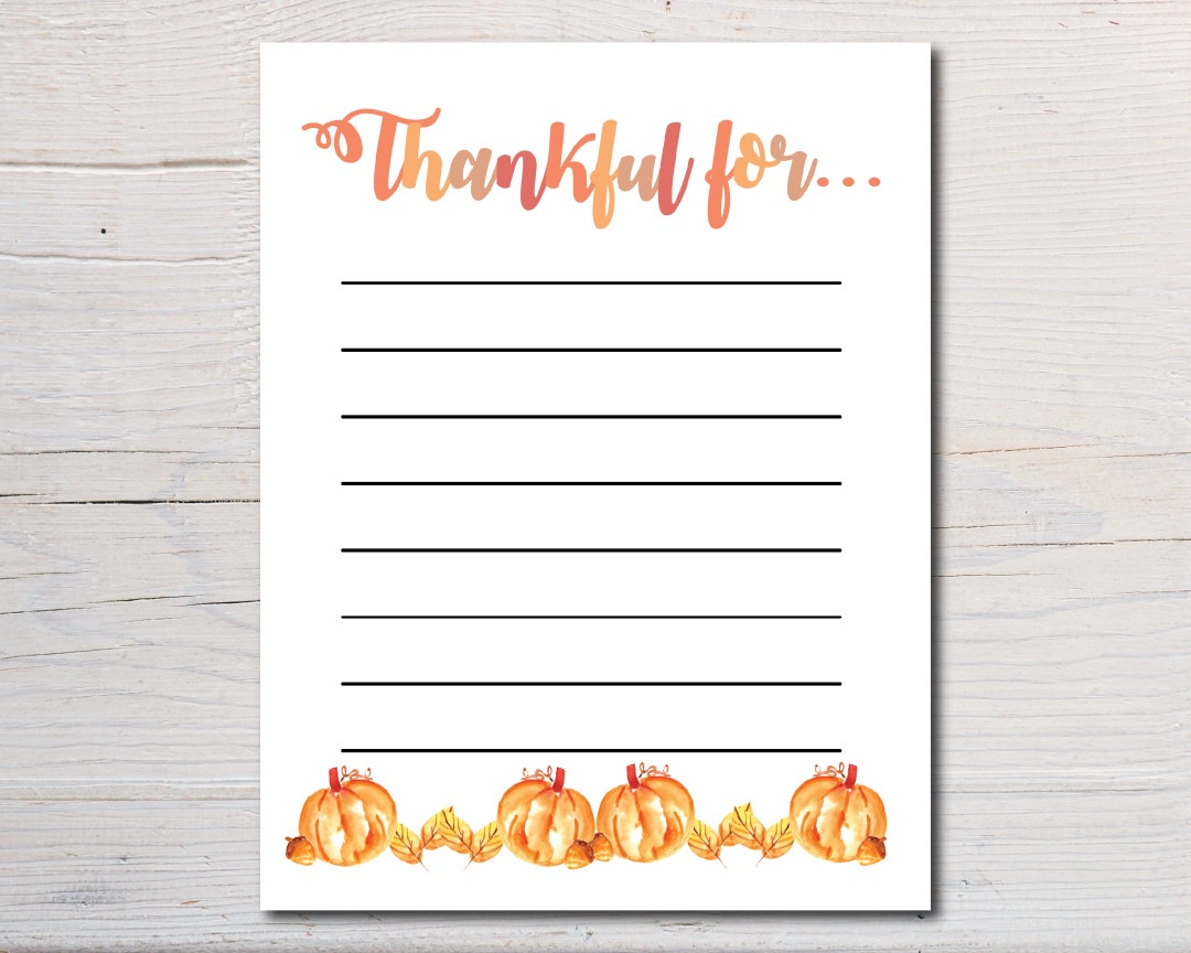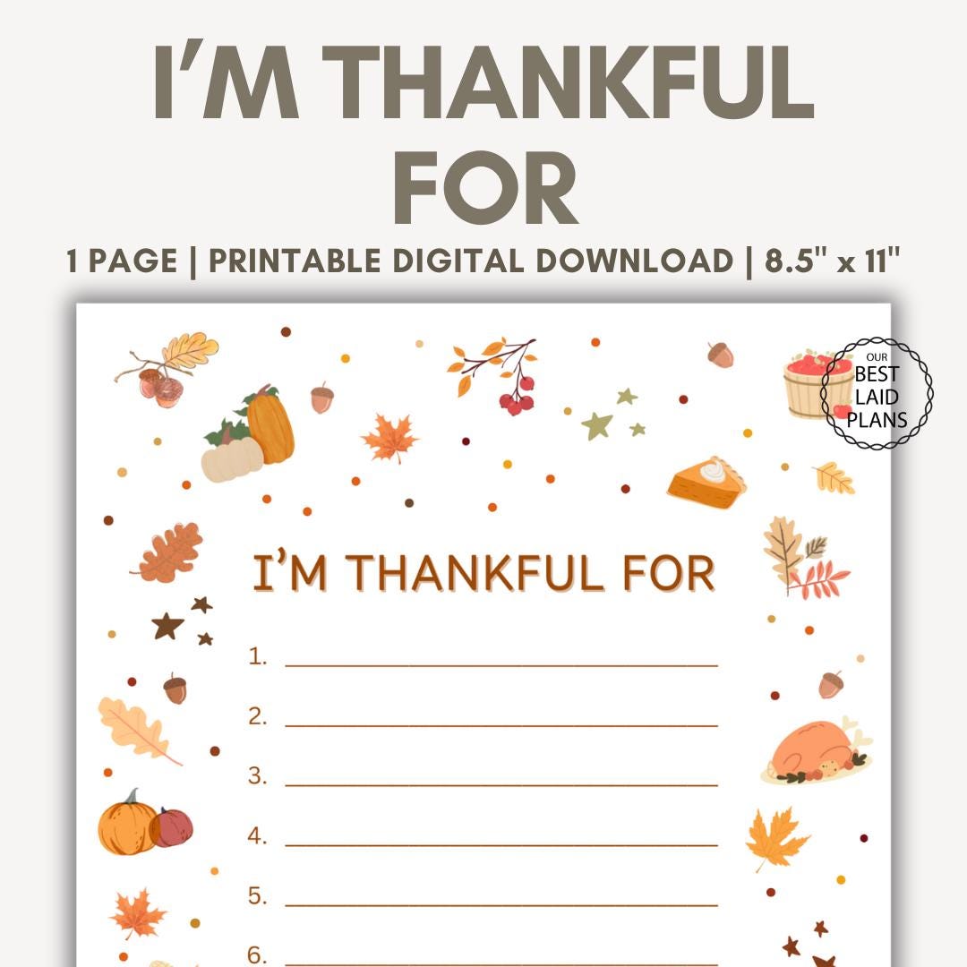 Thanksgiving Thankful List I`m Thankful for Gratitude Card Printable