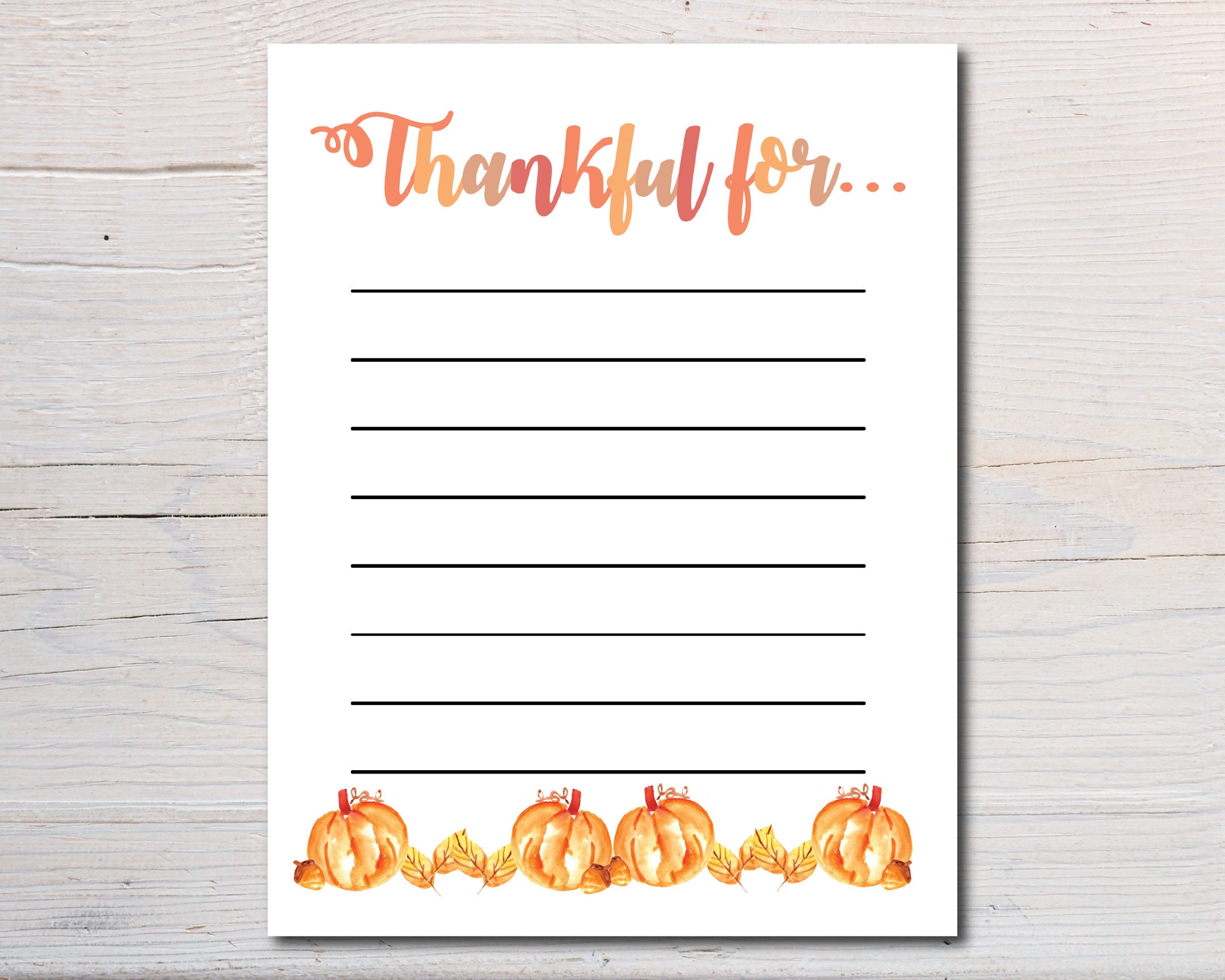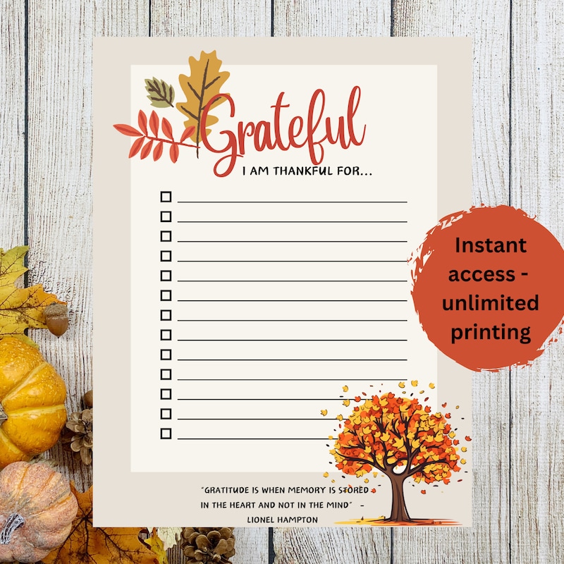 Thankful for List Printable Instant Digital Download Thankful