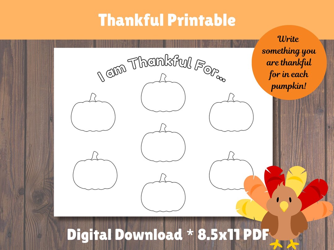 Grateful Thankful List Printable Activity for Kids Thanksgiving Pumpkin