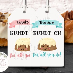 Printable Thanks a Bundt ch For All That You Do Gift Tag PDF Bundt Ca