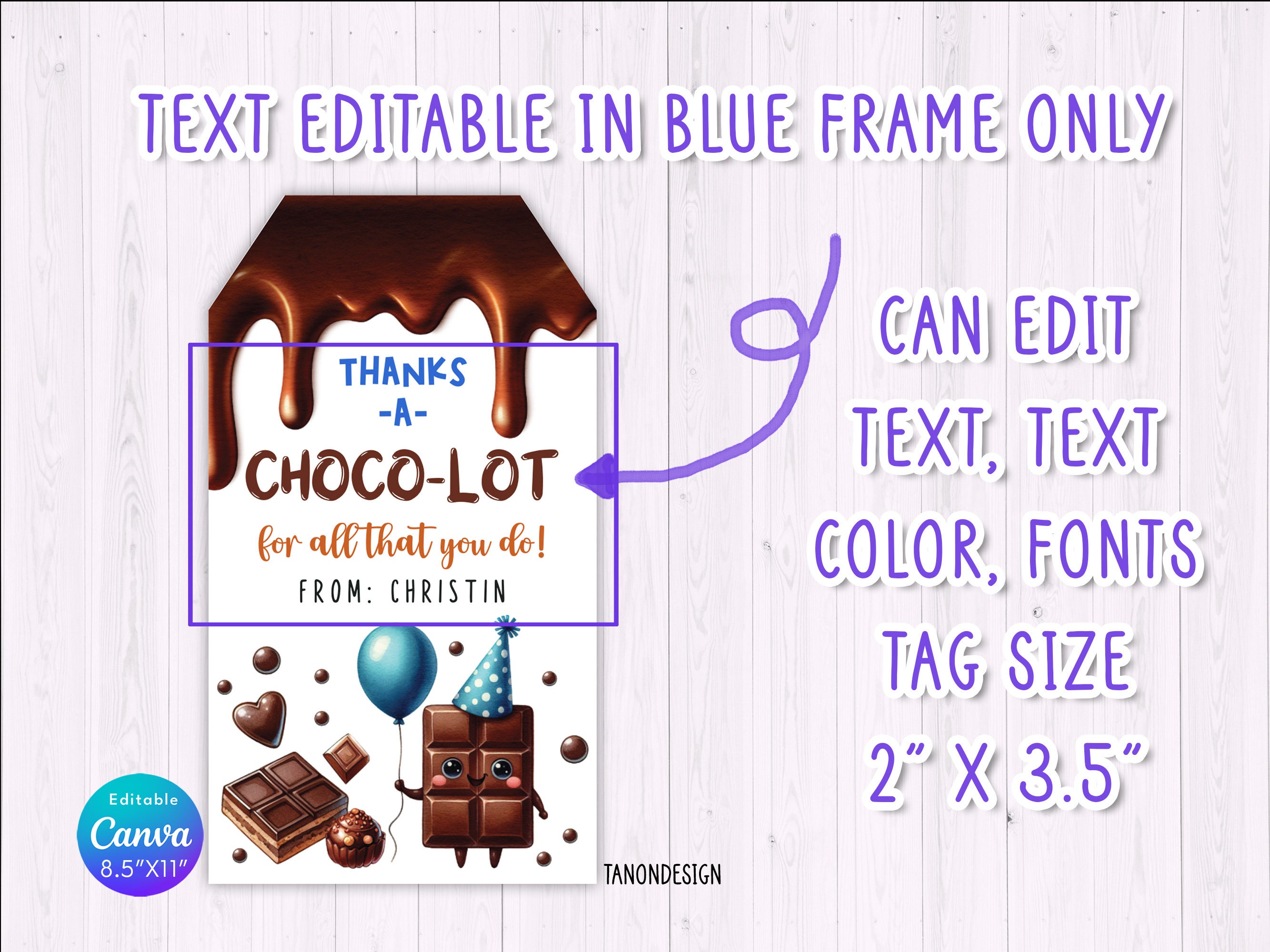 EDITABLE Thanks a Choco lot for All You Do Gift Tags Chocolate