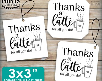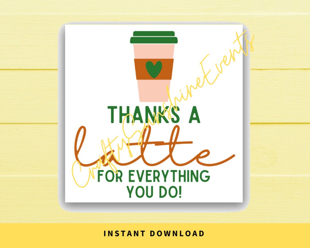 INSTANT DOWNLOAD Thanks A Latte for Everything You Do Square Gift Tags