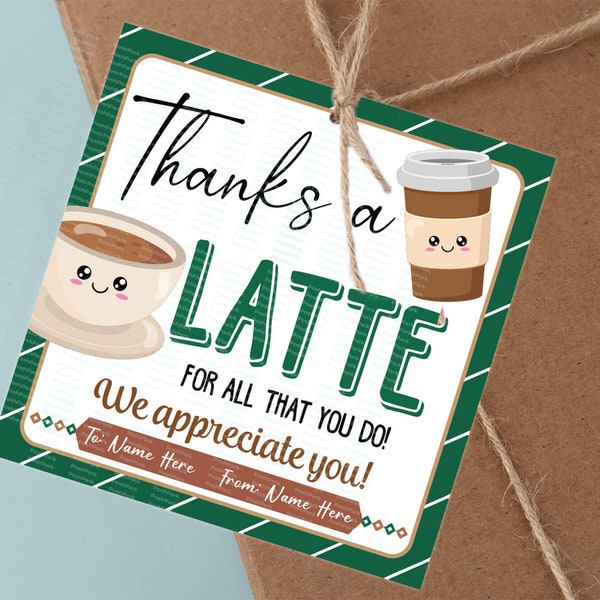 Printable/editable Thanks a Latte Coffee Gif Tag for Teachers Etsy
