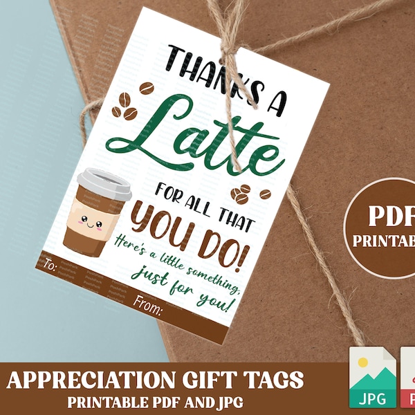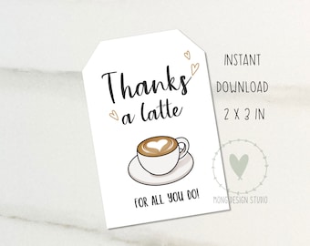 PRINTABLE Thanks a LATTE for All That You Do Coffee Tag Instant