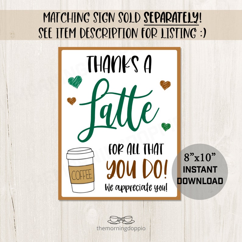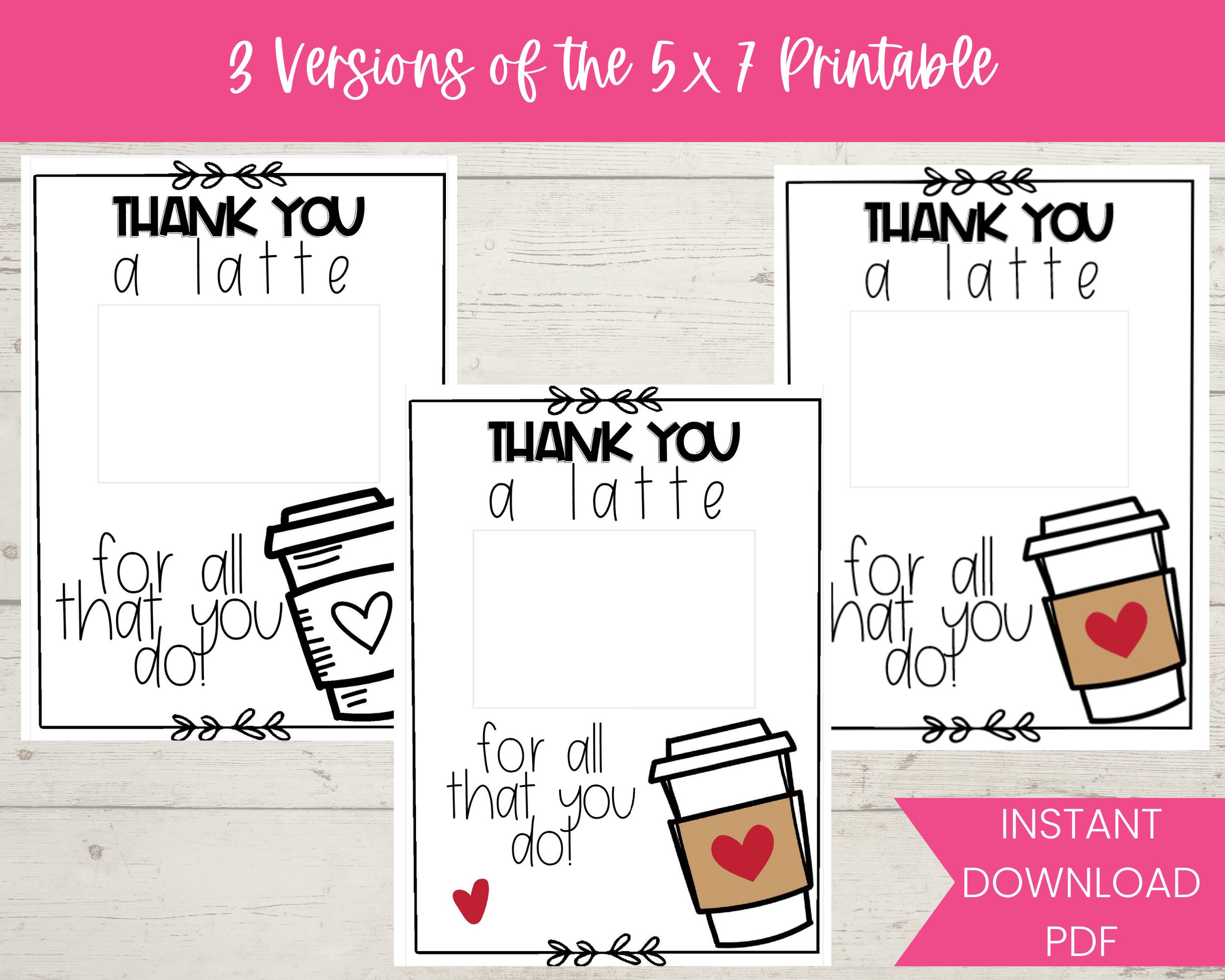 Printable Appreciation Card Thanks a Latte for All You Do Etsy