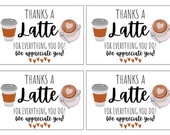 Printable Thanks a Latte for Everything You Do Tags Teacher Etsy