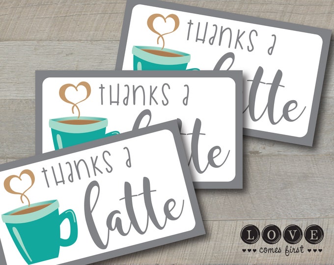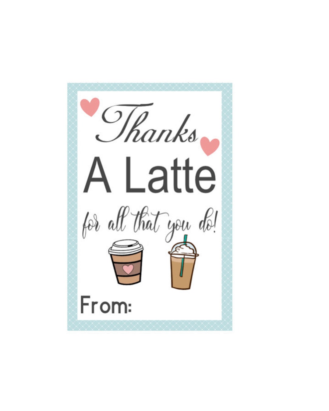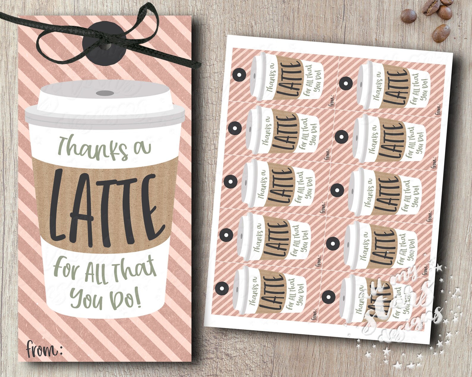 Thanks A Latte Tag Printable/ Gift Tag/ Thank You Tag/ Teacher Etsy