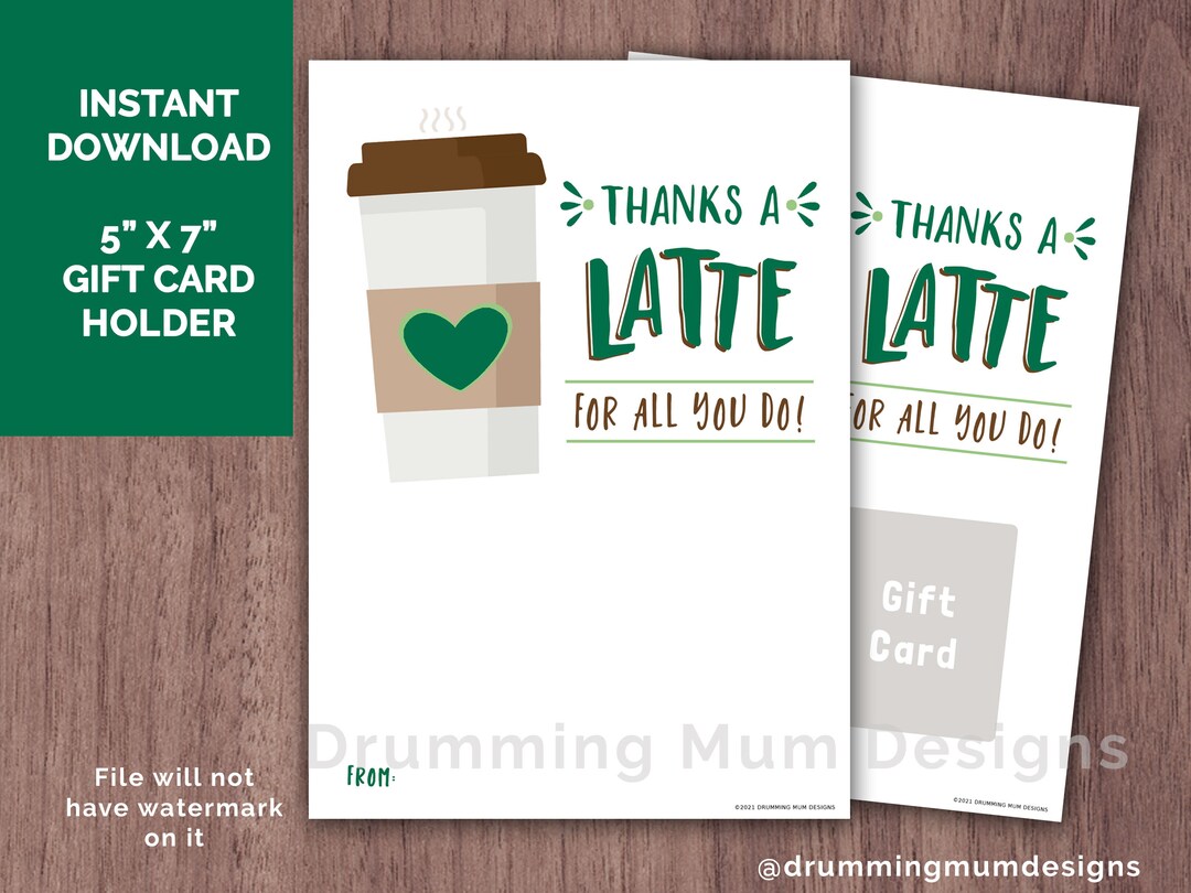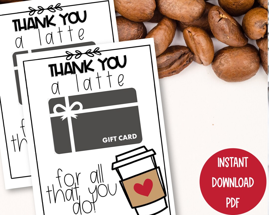 Thanks a Latte PRINTABLE Coffee Gift Card Holder Teacher Thank You End