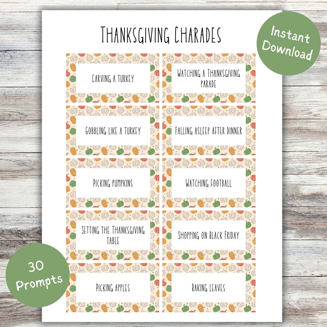 Thanksgiving Charades Printable Thanksgiving Game Thanksgiving