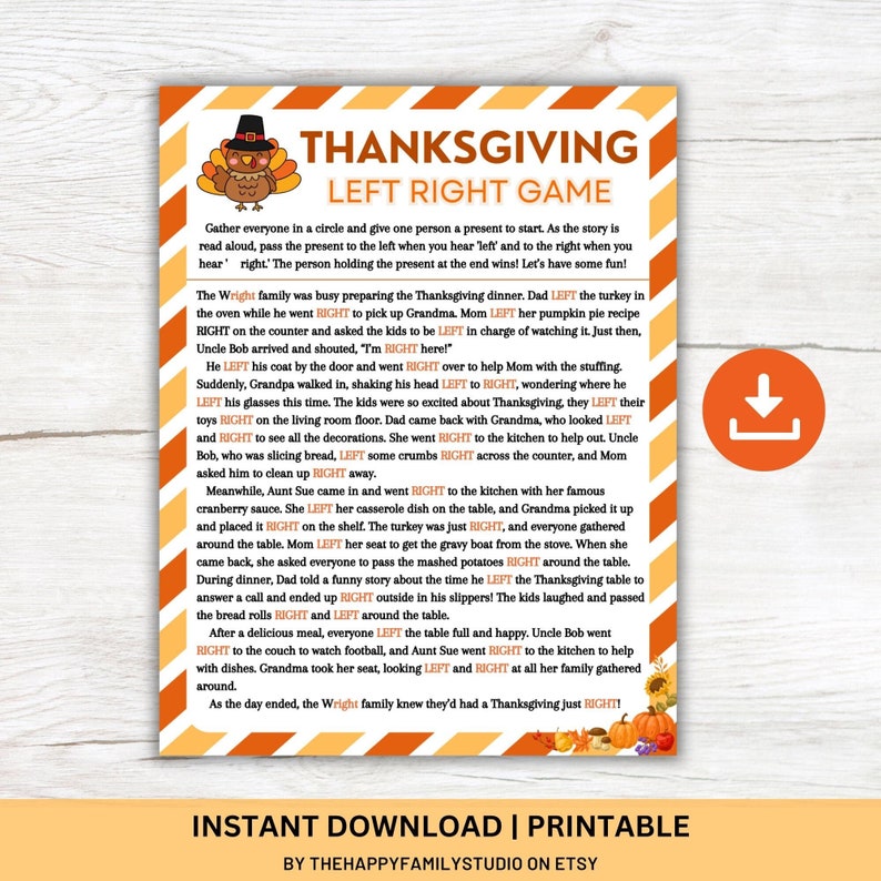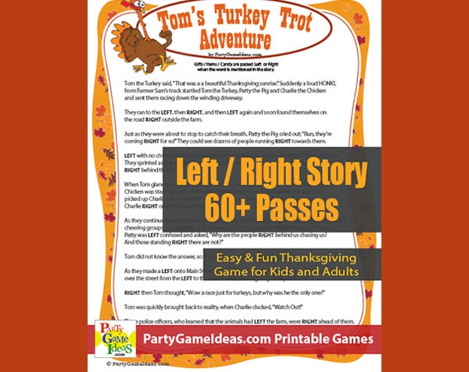Thanksgiving Left Right Game Thanksgiving Turkey Story Pass the Prize