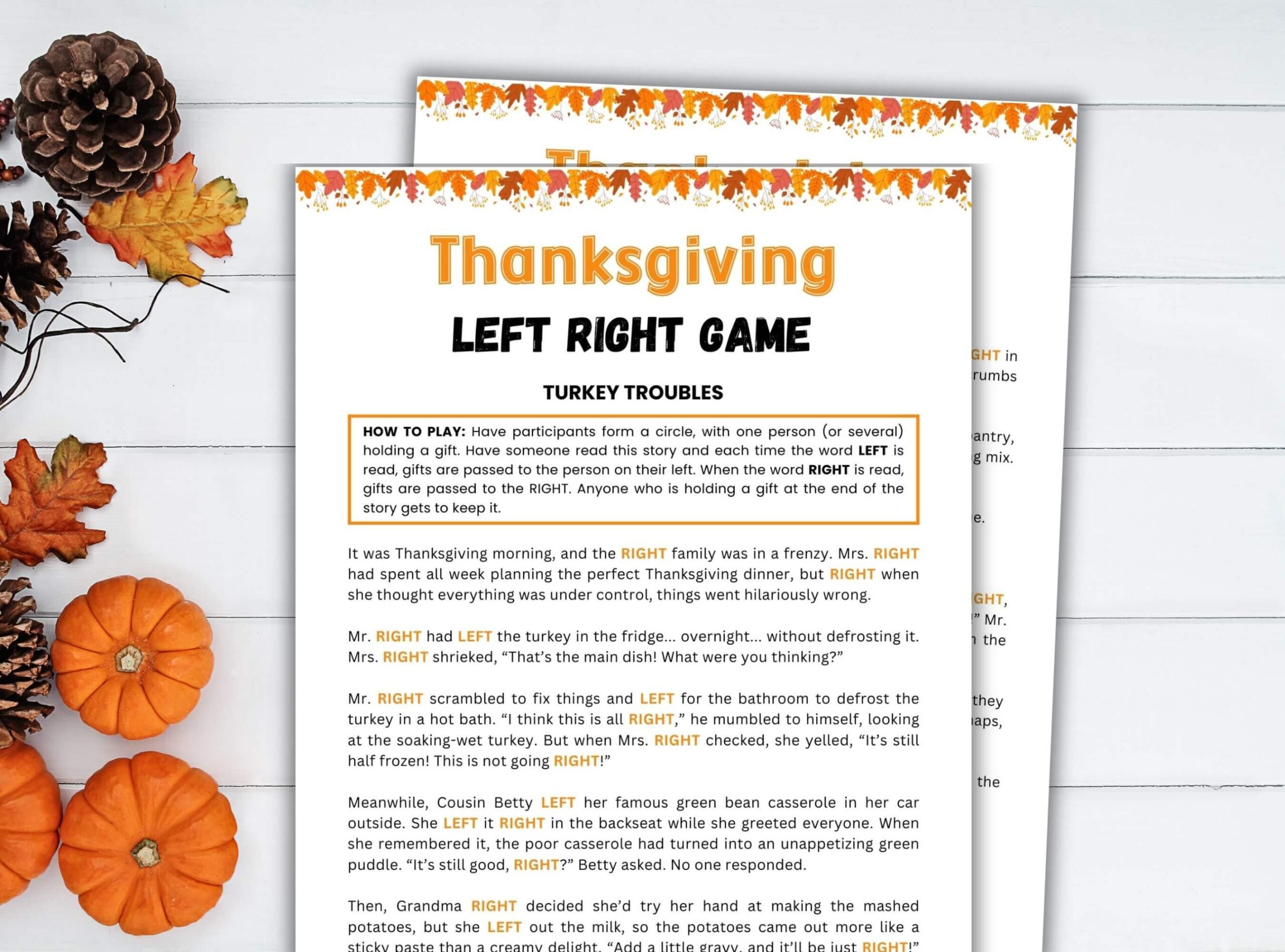 Printable Thanksgiving Left Right Game for Kids and Adults Pass the