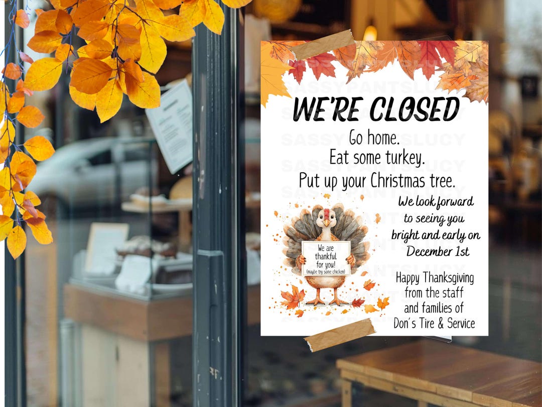 EDITABLE CLOSED for THANKSGIVING Sign We #39 re Closed Sign Thanksgiving