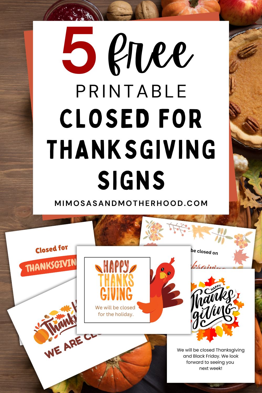 Free Printable Closed for Thanksgiving Signs (5 options) Mimosas