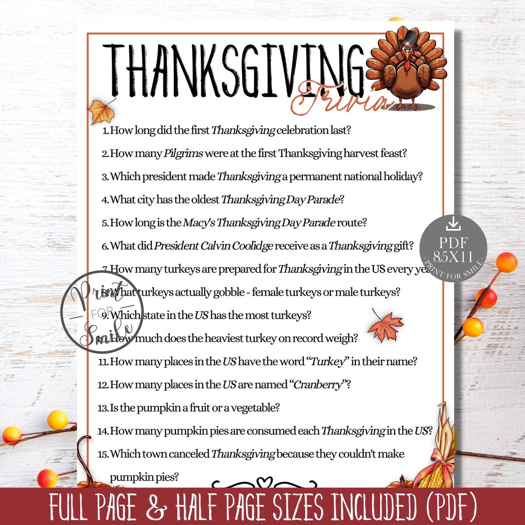 Thanksgiving Trivia Game Printable Thanksgiving Trivia Questions