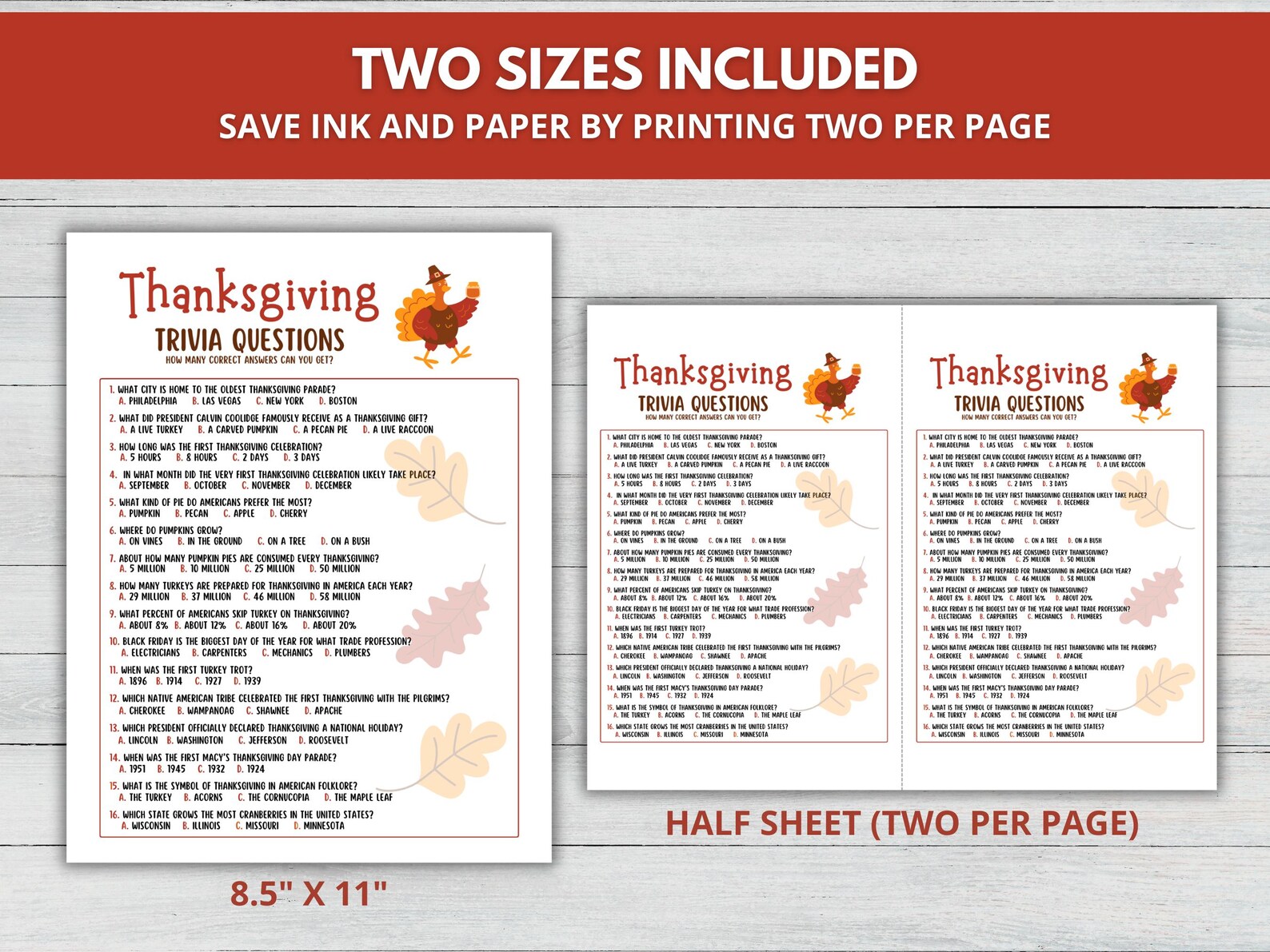Thanksgiving Trivia Game Printable Thanksgiving Trivia Quiz with