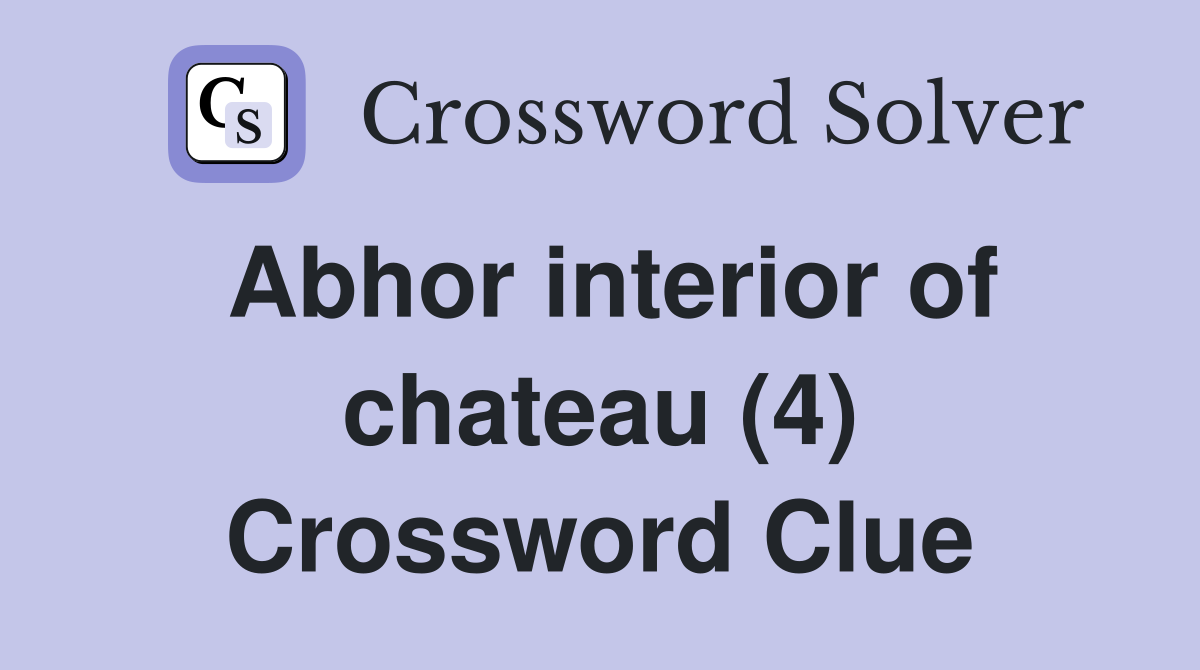 Abhor interior of chateau (4) Crossword Clue Answers Crossword Solver