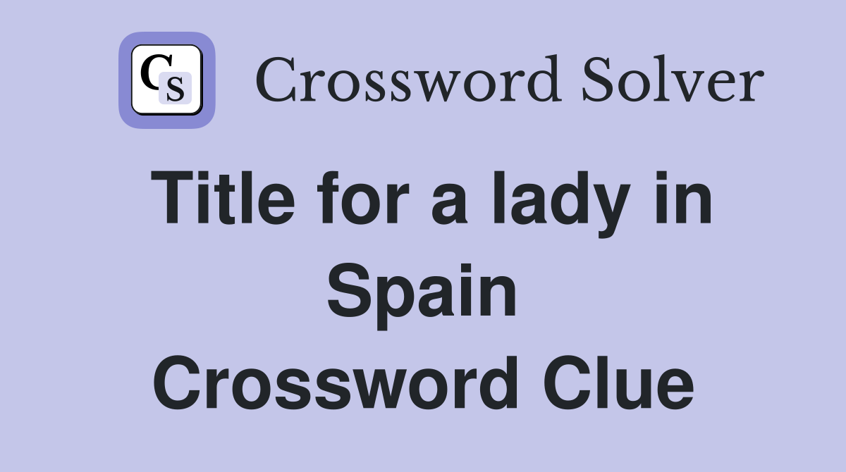 Title for a lady in Spain Crossword Clue Answers Crossword Solver