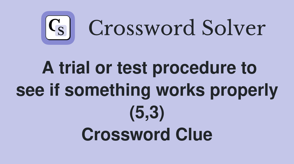 A trial or test procedure to see if something works properly (5 3