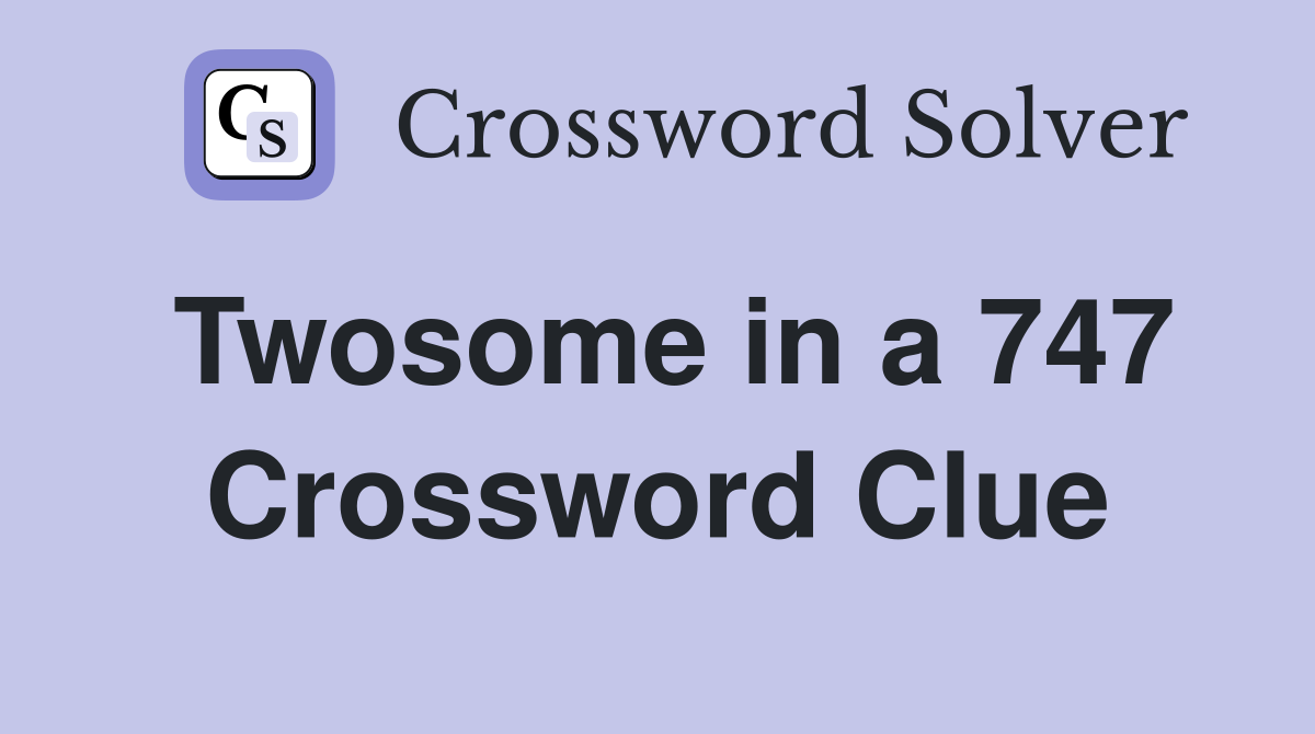 Twosome in a 747 Crossword Clue Answers Crossword Solver